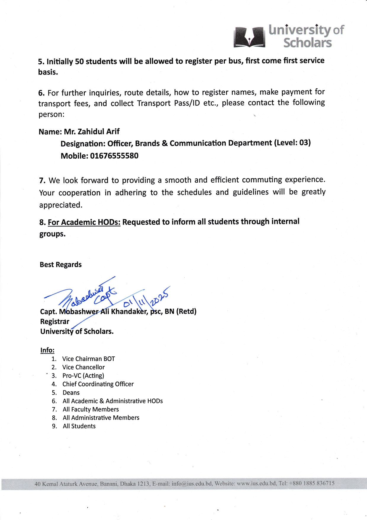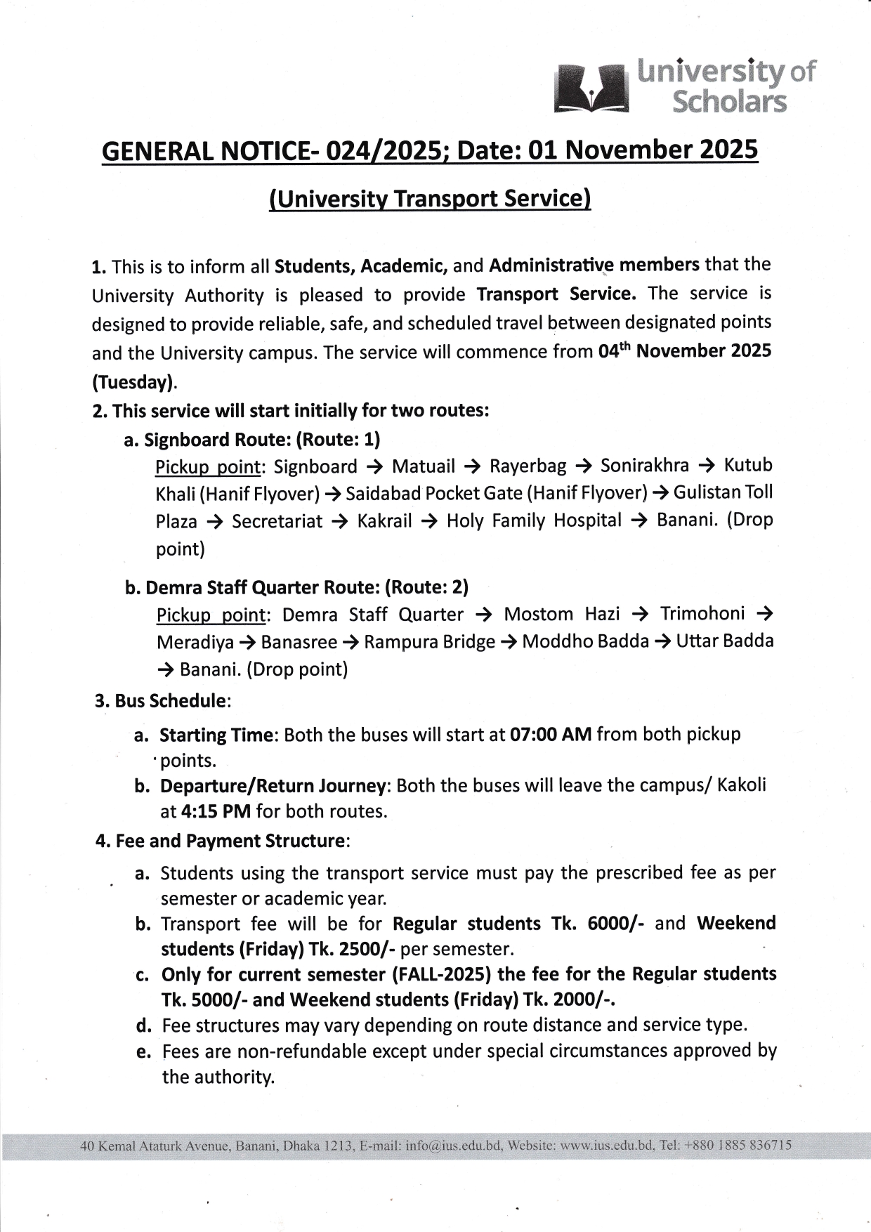 • General Notice- University Transport Service