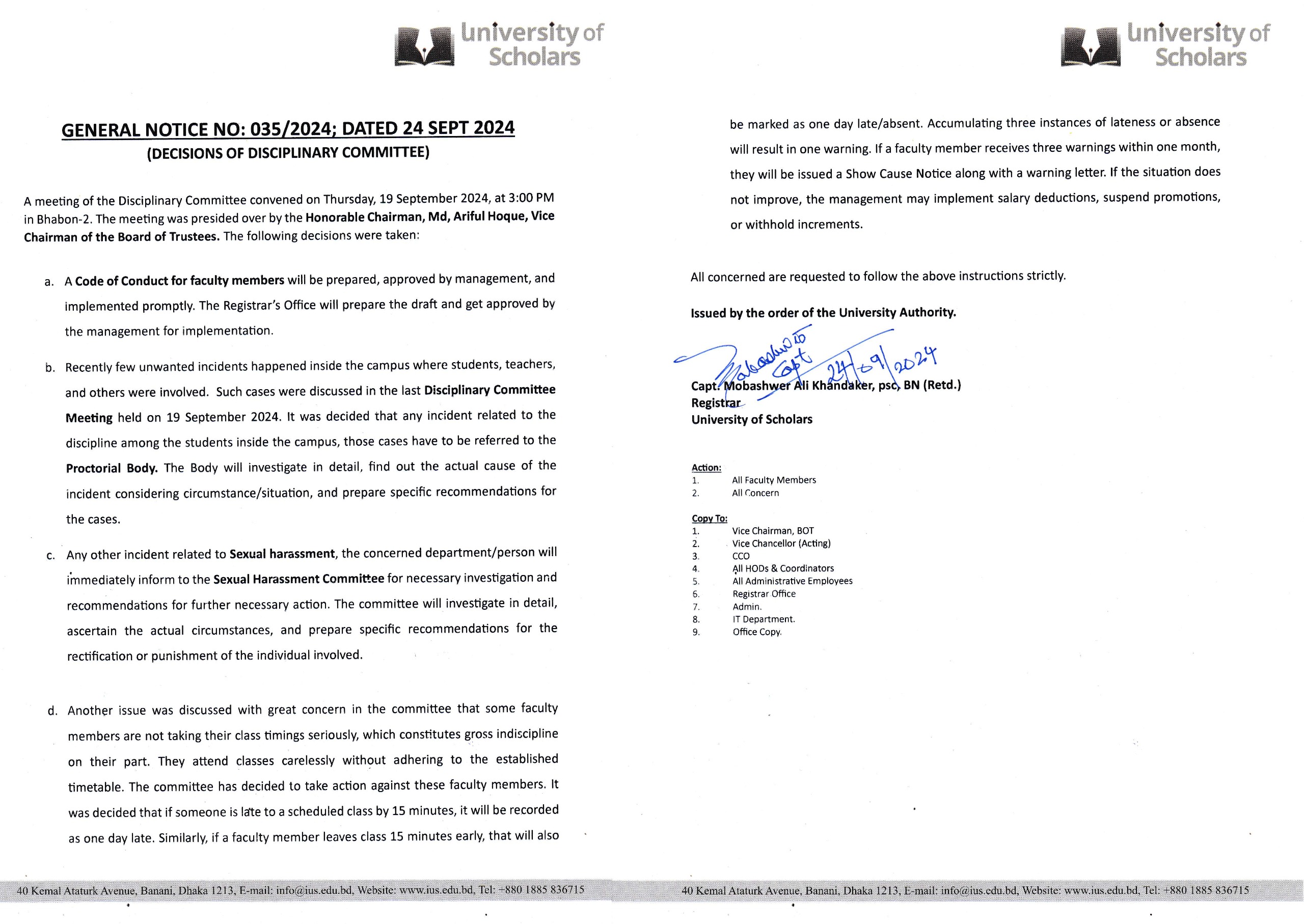 • General Notice for DECISIONS OF DISCIPLINARY COMMITTEE
