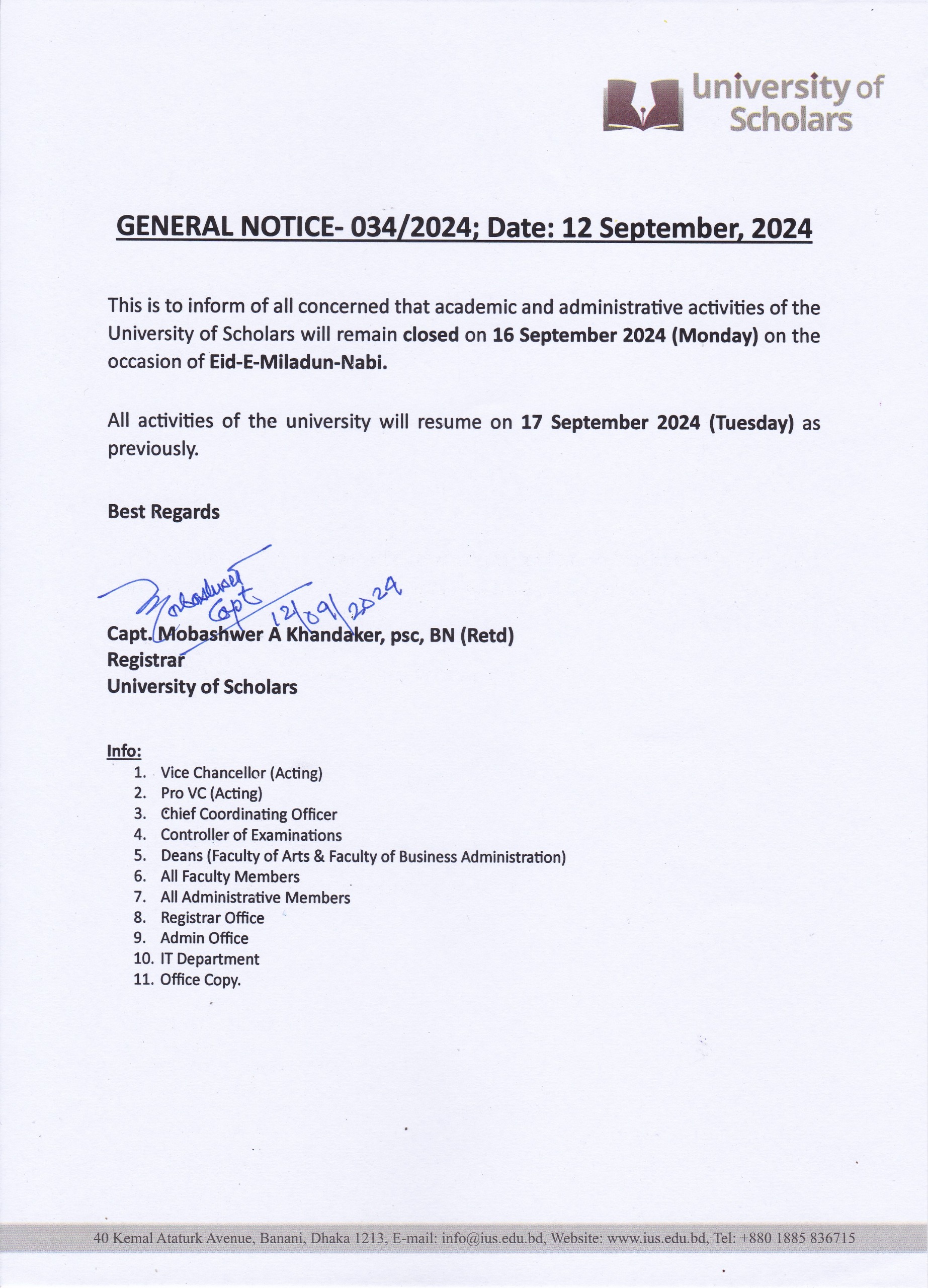 • General Notice for the occasion of Eid-E-Miladun-Nabi