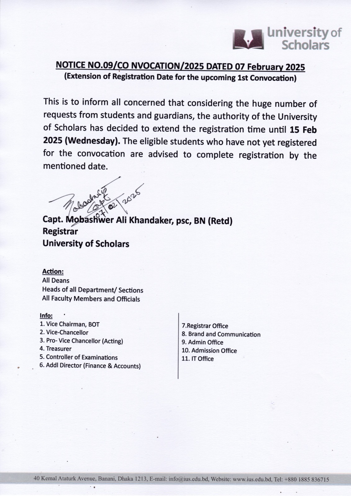 New Deadline of Registration Date for the Upcoming 1st Convocation