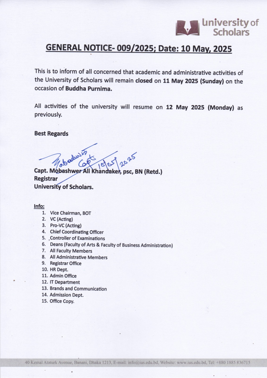 • Notice of Vacation on 11 May 2025 on the occasion of Buddha Purnima