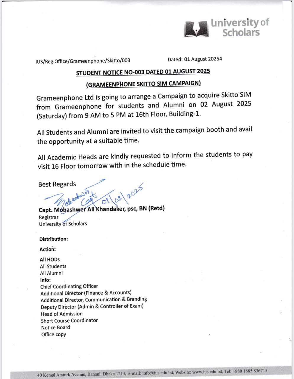 STUDENT NOTICE -GRAMEENPHONE SKITTO SIM CAMPAIGN
